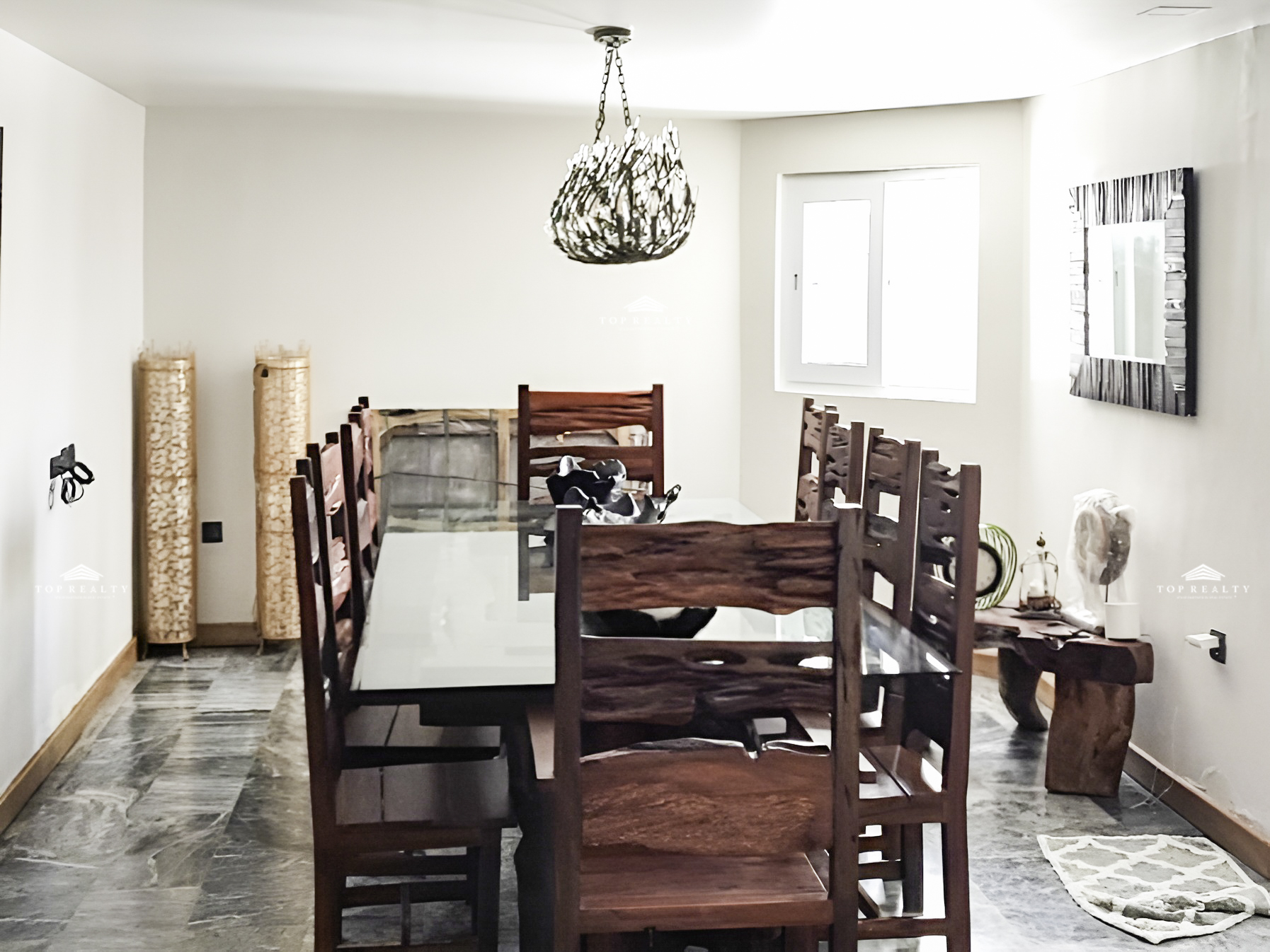• Marble floors and walls